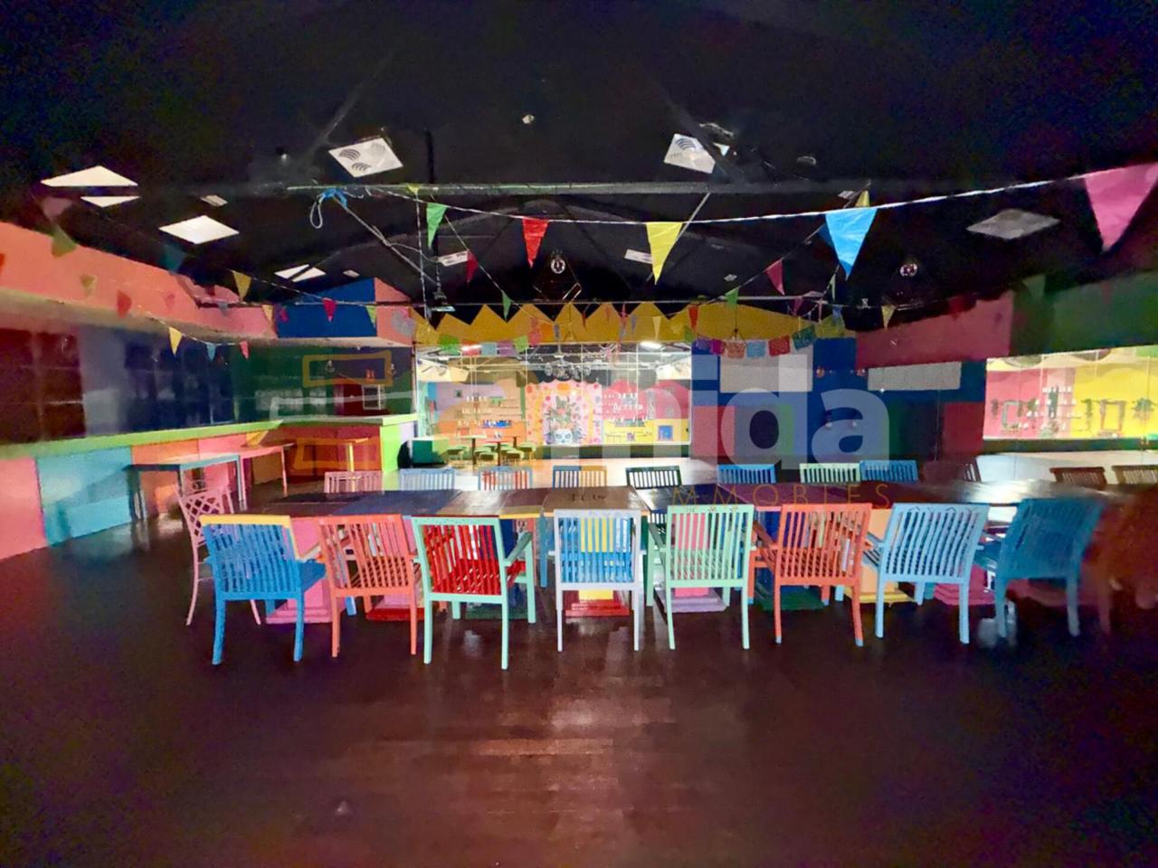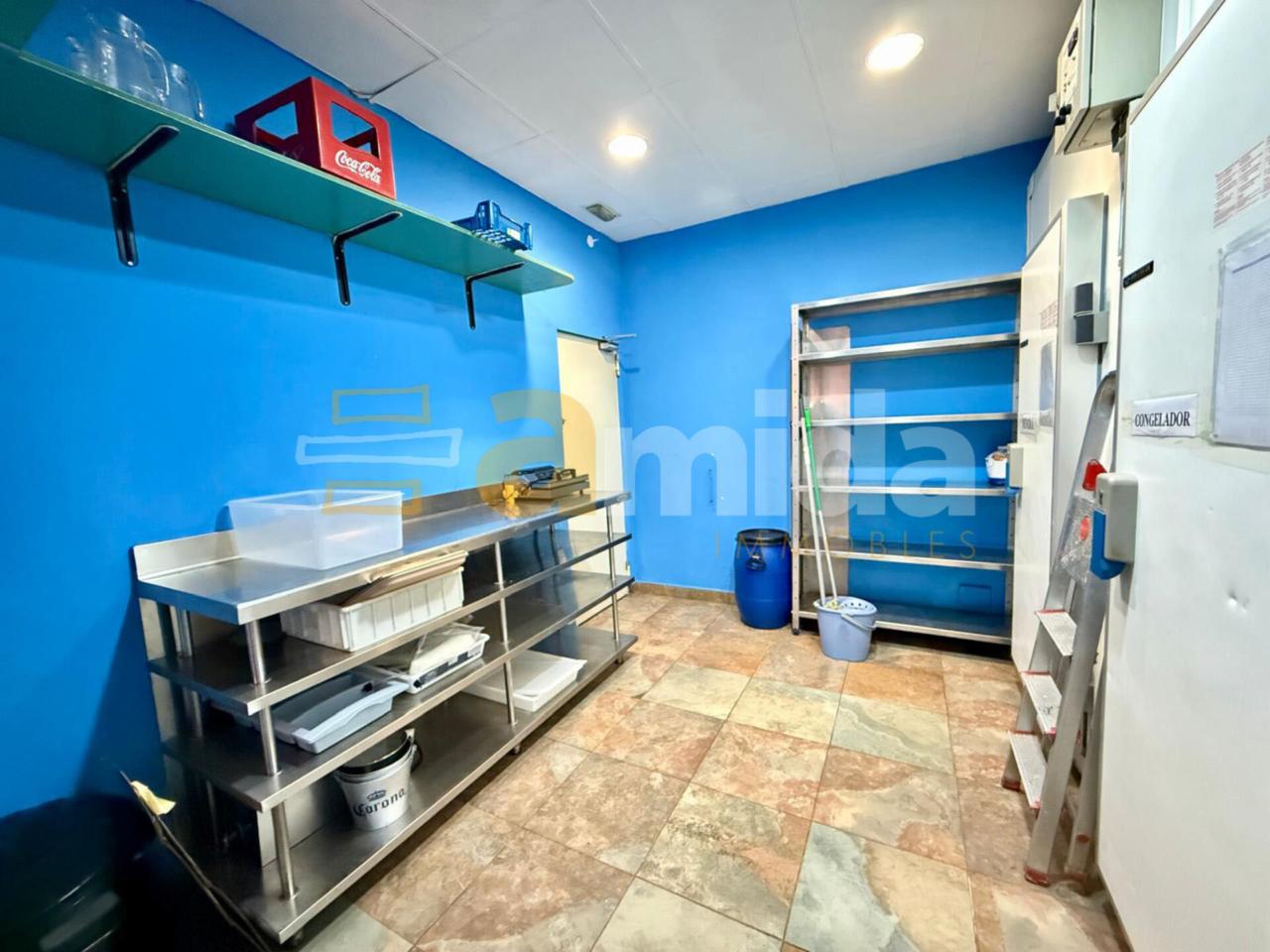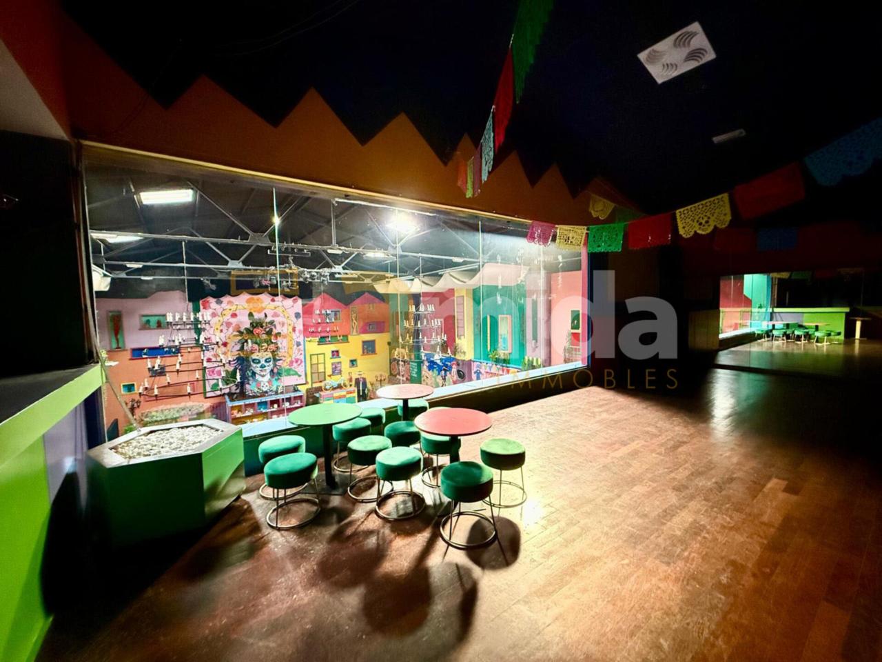 - Planta baixa: Menjador principal per a 160 comensals, cuina completament equipada amb sortida de fums, cambra frigorífica i de congelació, forns, fogons, fregidores... A més, compta amb barra totalment equipada (cafetera, rentavaixelles i material inclòs), zona de magatzem i 5 banys (un adaptat per a persones amb mobilitat reduïda).