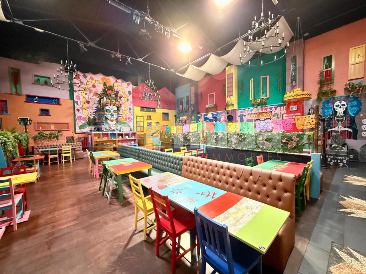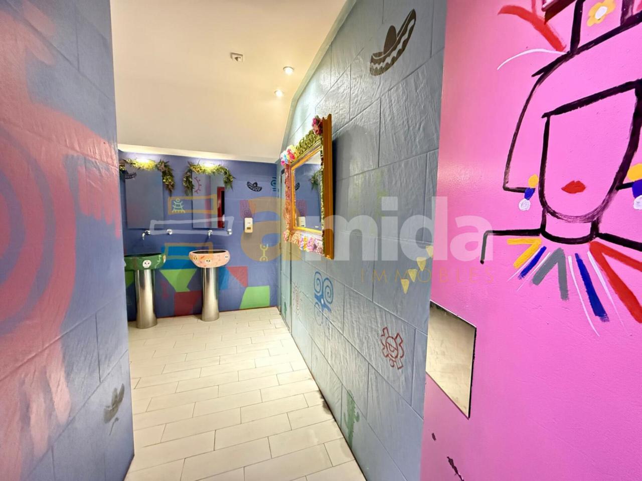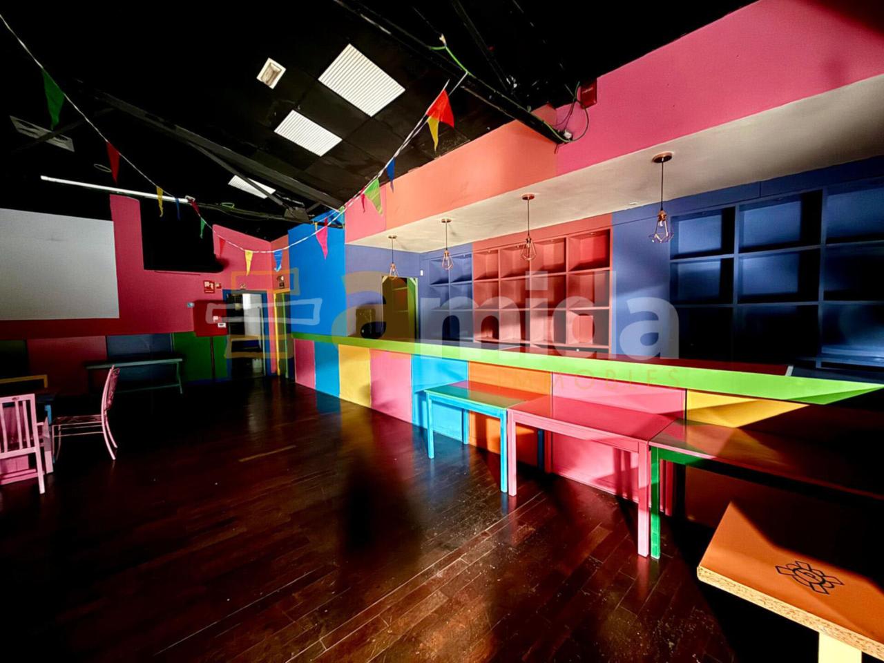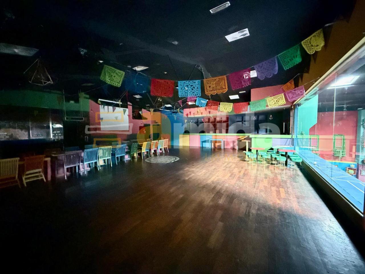 - Planta baixa: Menjador principal per a 160 comensals, cuina completament equipada amb sortida de fums, cambra frigorífica i de congelació, forns, fogons, fregidores... A més, compta amb barra totalment equipada (cafetera, rentavaixelles i material inclòs), zona de magatzem i 5 banys (un adaptat per a persones amb mobilitat reduïda).