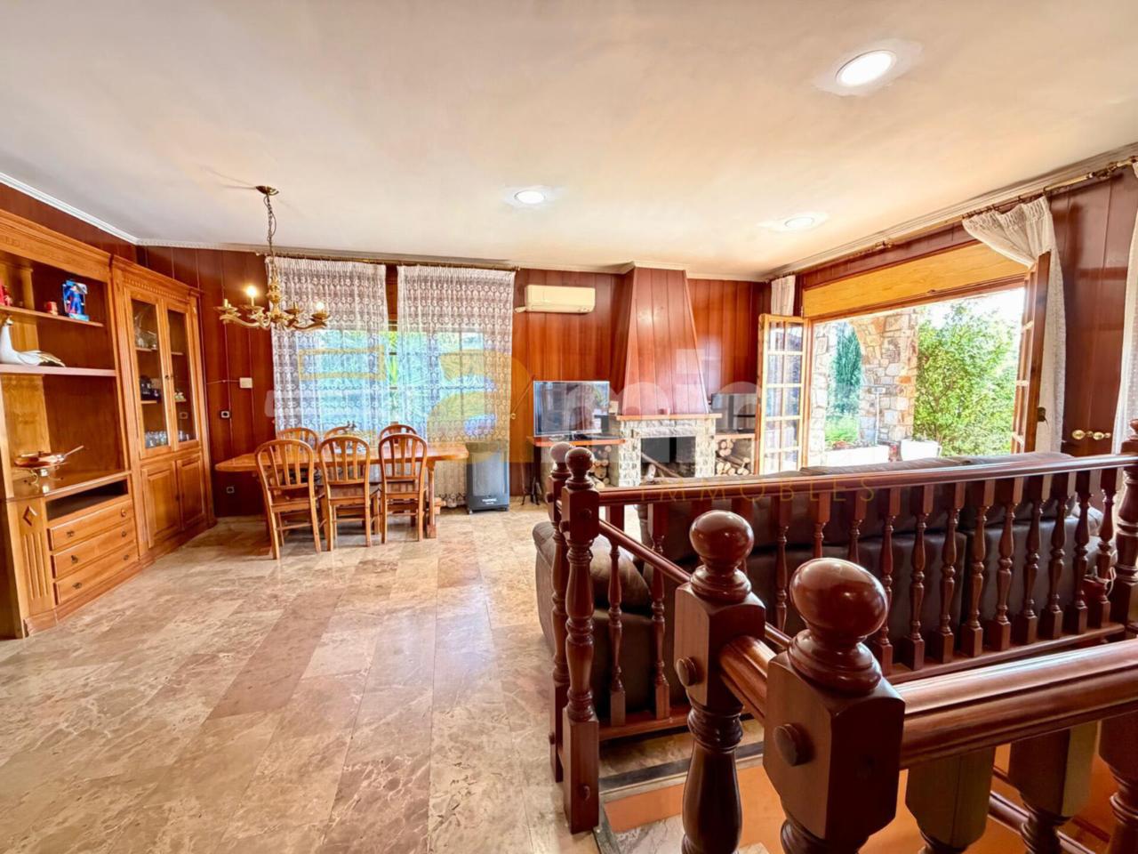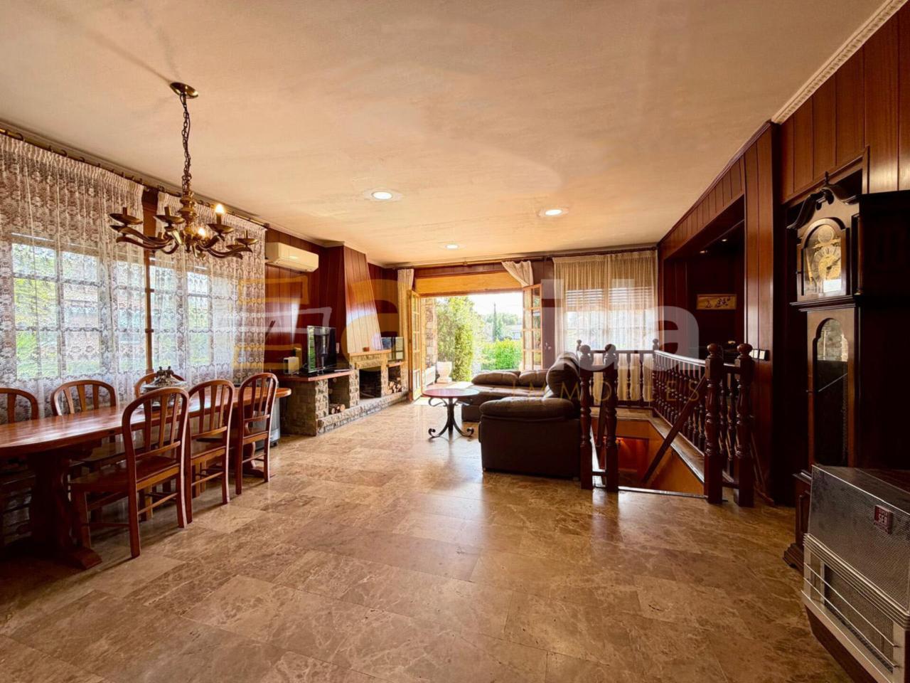 El cor de la planta baixa és el gran menjador-sala d’estar d’uns 40 m², amb llar de foc, que connecta directament amb la zona del jardí, creant una perfecta continuïtat entre interior i exterior.