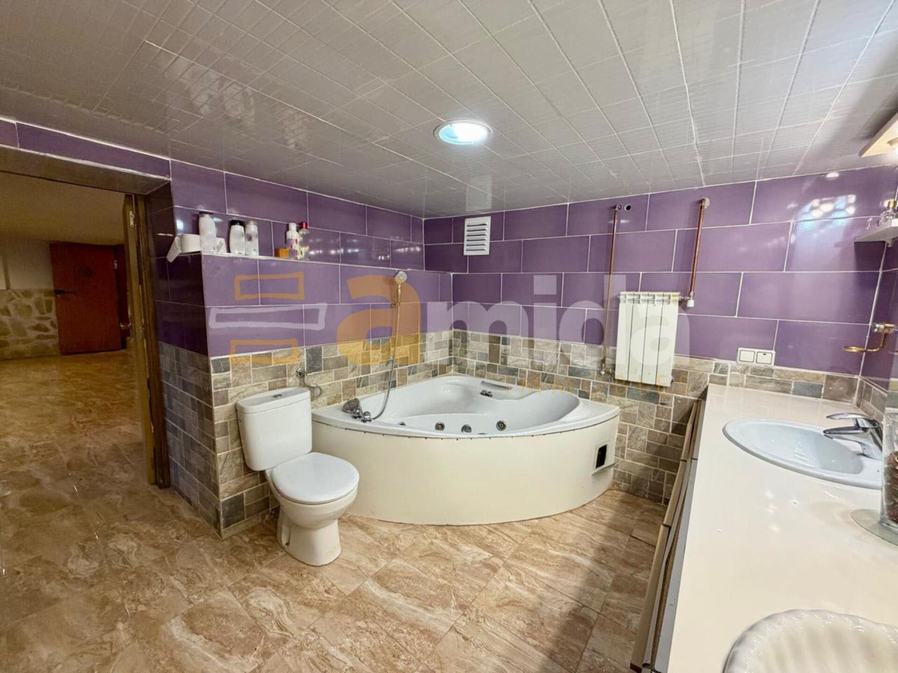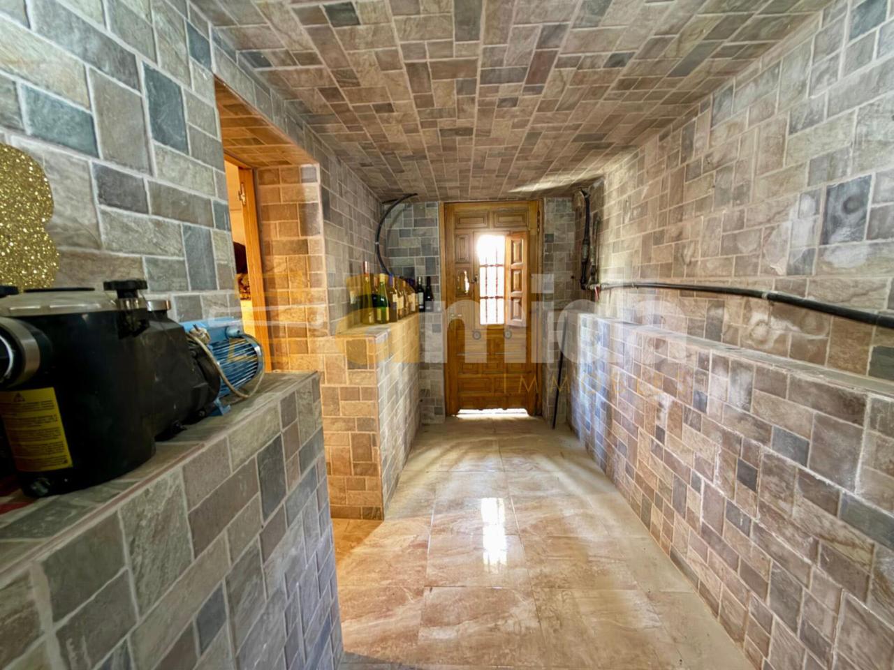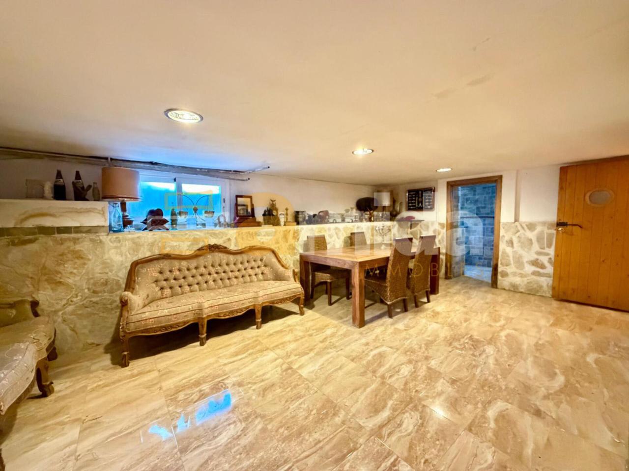 La planta inferior acull un agradable celler d’uns 40 m², habilitada com a menjador-sala d’estar, ideal per reunions familiars, celebracions o com a espai de lleure. En aquest nivell hi trobem també un bany complet d’uns 10 m² amb banyera-jacuzzi, perfecte per a moments de relax, i un garatge tancat d’uns 50 m² amb capacitat per a diversos vehicles i espai d’emmagatzematge.