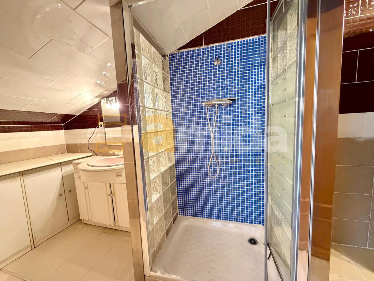 A la planta superior, un rebedor-distribuïdor ens dona accés a una altra sala polivalent, actualment habilitada com a habitació doble, amb claraboia que aporta molta llum natural, i un bany complet amb dutxa.