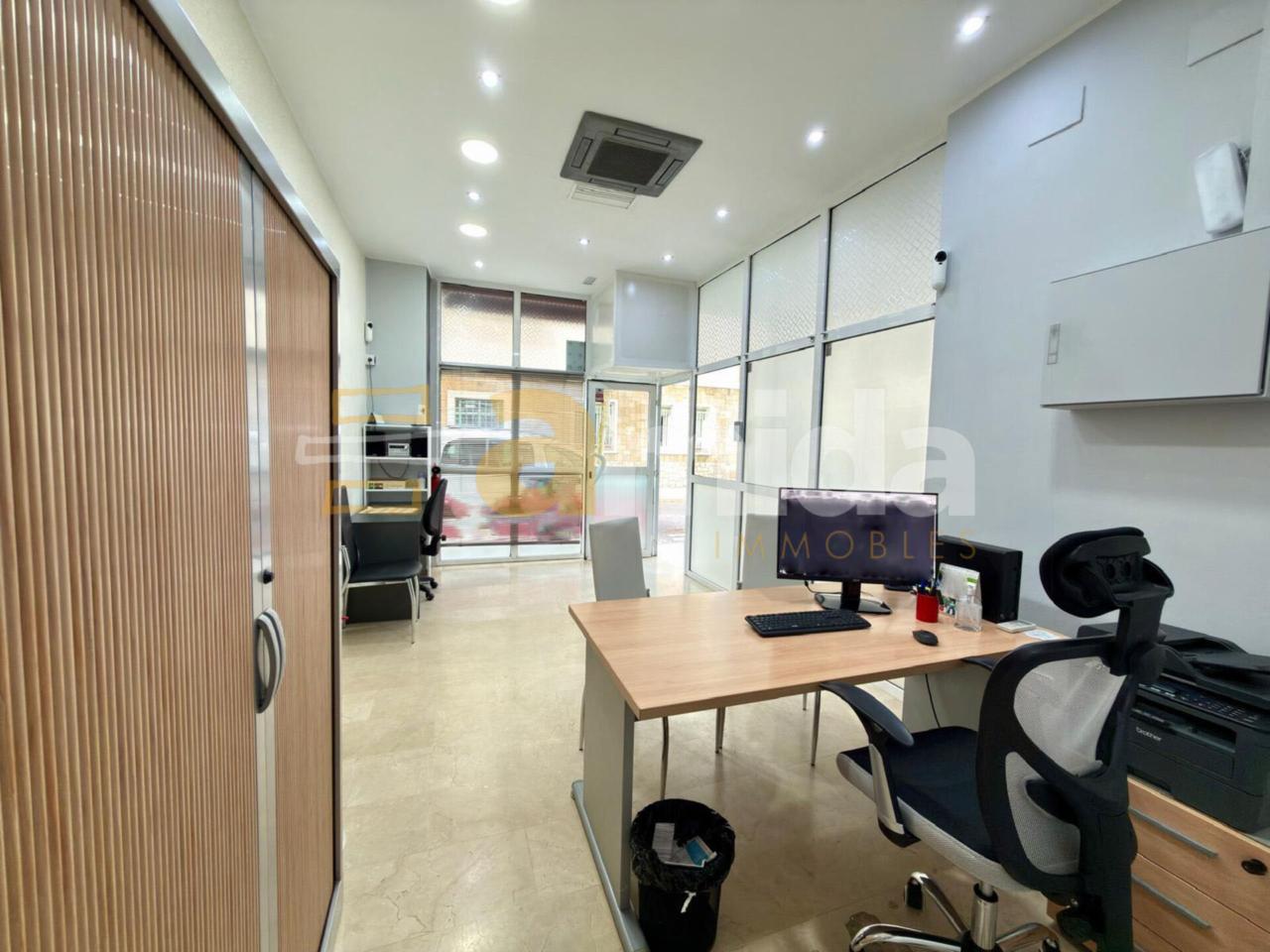 Amb una superfície aproximada de 20 m² i situat a peu de carrer, aquest espai es distribueix en una sala principal amb accés a un despatx —ideal com a traster, arxiu o zona de suport logístic— i un lavabo de cortesia.