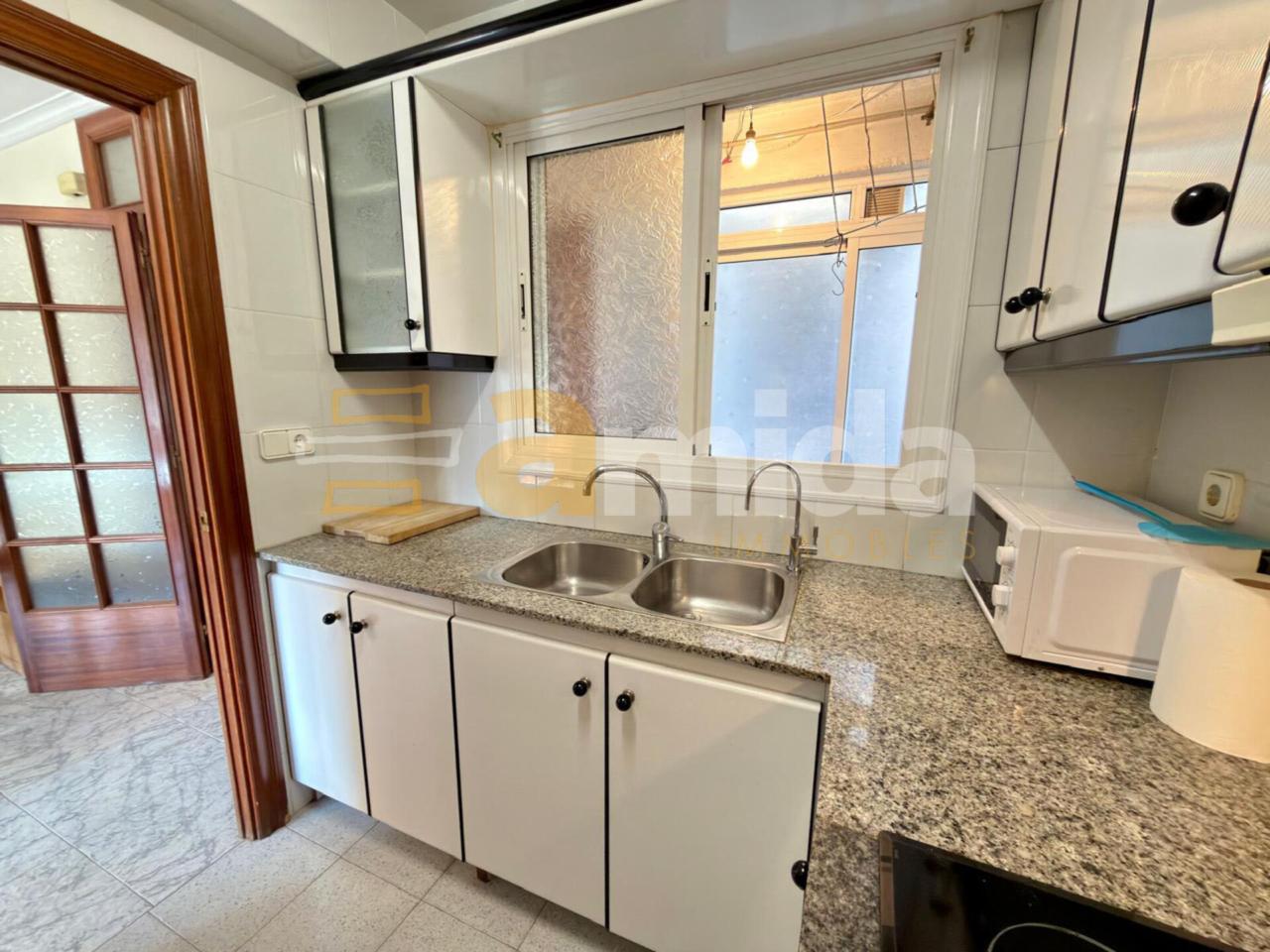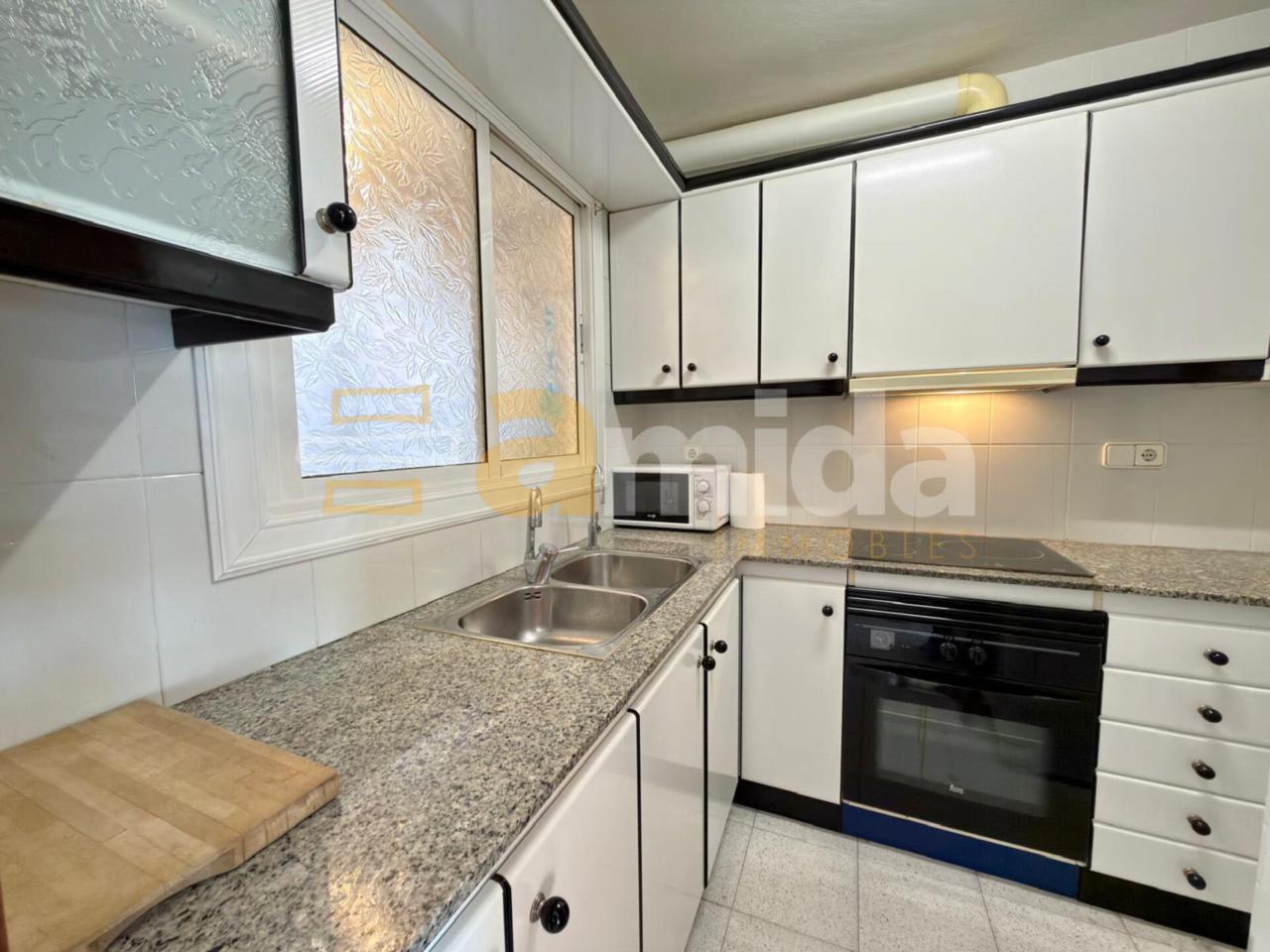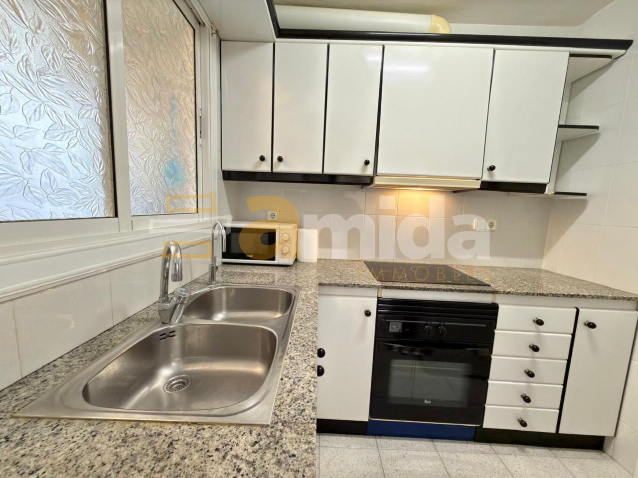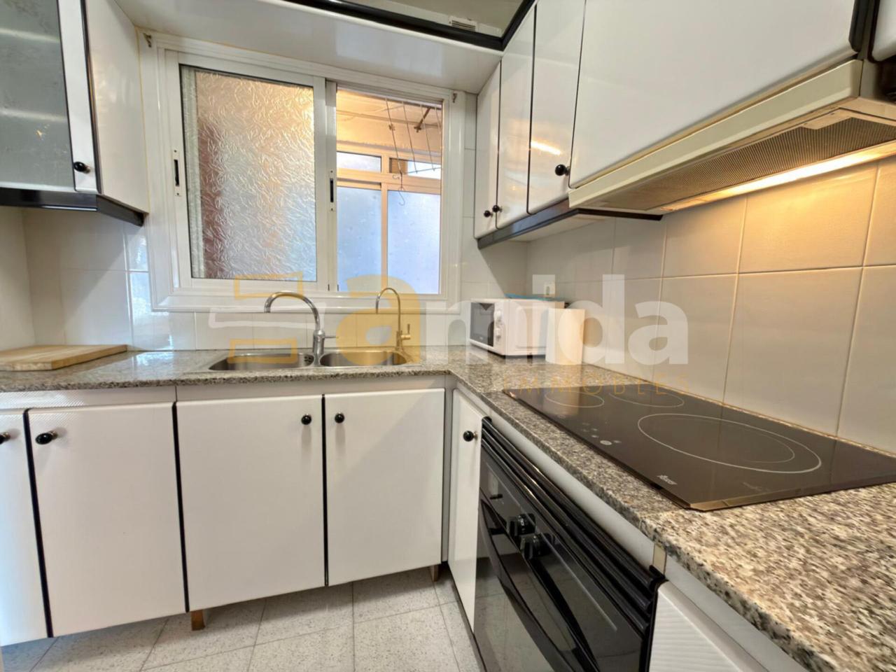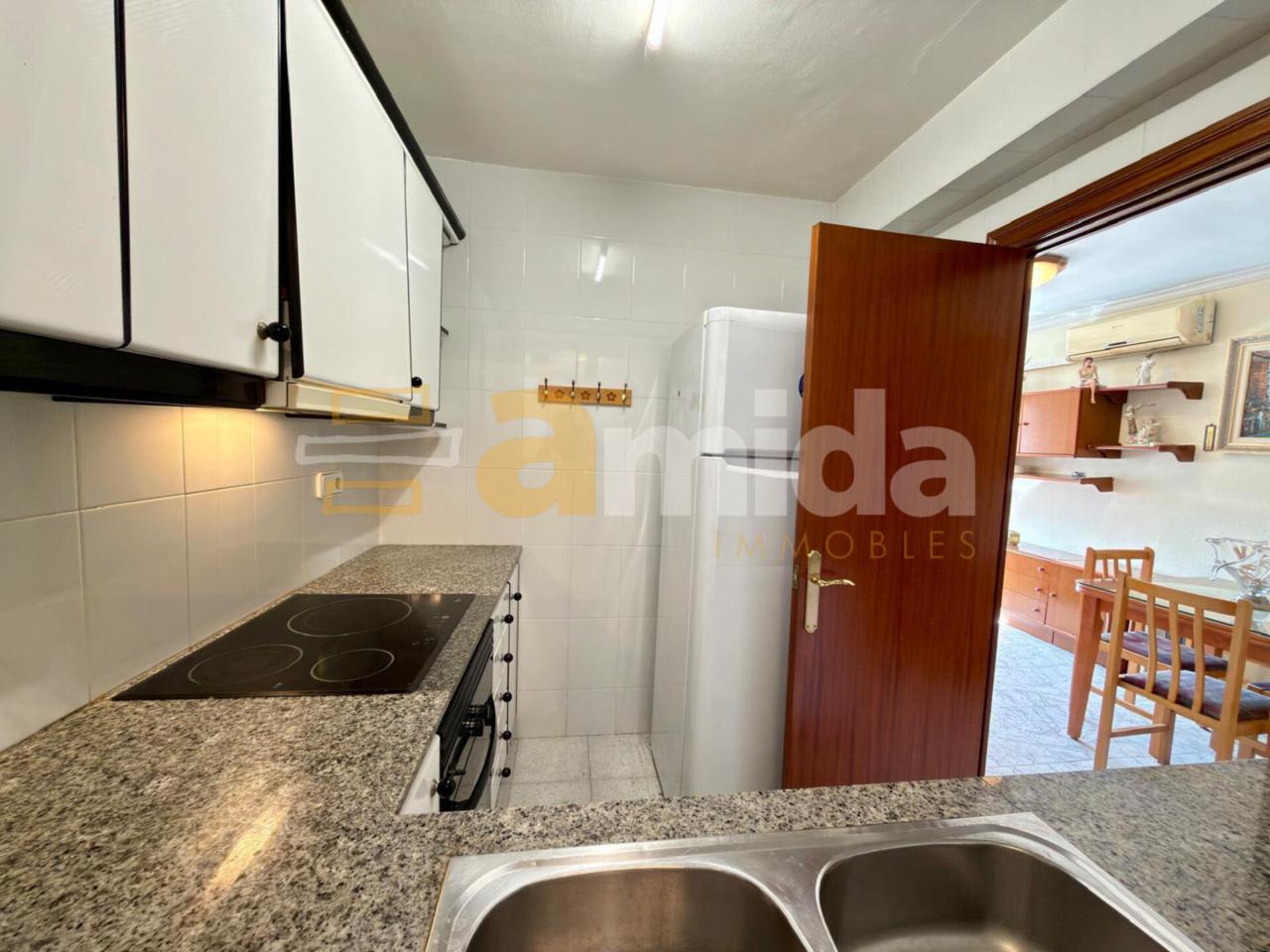En accedir-hi, trobem un rebedor que dona pas al saló-menjador d’uns 15 m², amb un gran finestral que aporta una excel·lent entrada de llum natural. La cuina de 5 m² és independent i disposa de safareig de 7 m², un espai molt pràctic en el dia a dia.